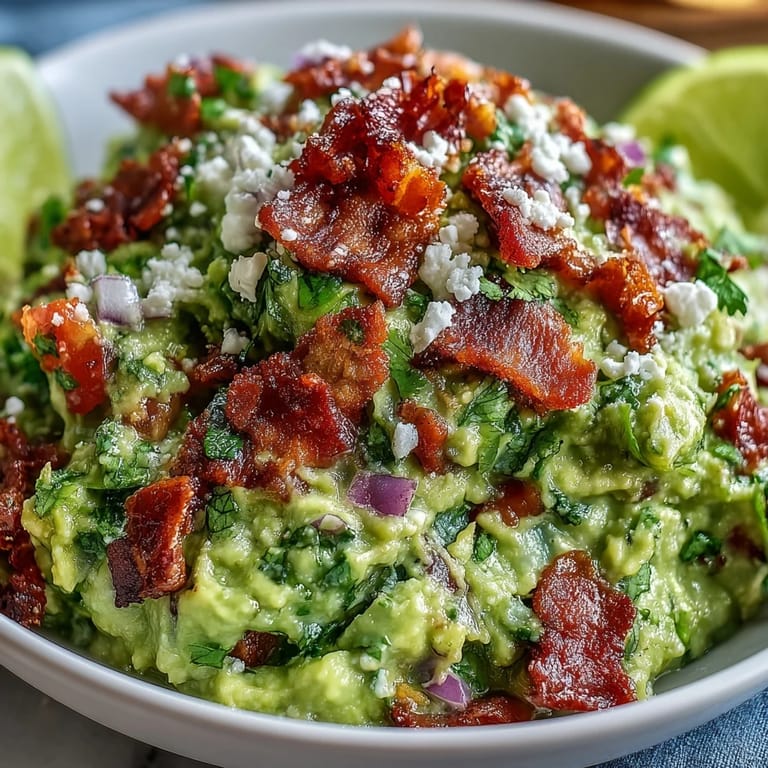 Save Pin The smell of bacon frying always pulls people into the kitchen, but the day I stirred crumbled strips into guacamole, my brother stopped mid-sentence and stared. He'd been skeptical about messing with a classic, but one bite silenced him. The smoky, salty crunch against cool avocado and tangy Cotija was enough to win over even the purists. Now it's the dip that disappears first at every gathering, and I always double the batch.