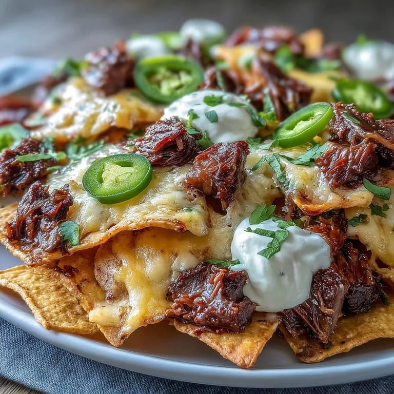 Save Pin The smell of barbecue sauce bubbling in a skillet always reminds me of Sundays when I'd throw together something fast before the game started. One afternoon I had leftover beef and half a bag of chips that were about to go stale, so I piled everything on a sheet pan and called it nachos. My brother walked into the kitchen, took one bite, and said this was better than anything we'd ordered out. I've been making them this way ever since.