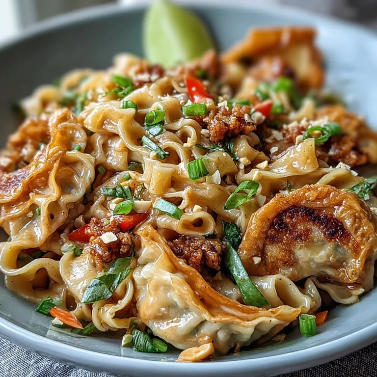 Save Pin There's something magical about the moment when a noodle bowl comes together—when creamy sauce coats tender strands and everything glistens under kitchen light. I discovered this particular version while experimenting one weeknight, trying to recreate the depth of a restaurant dish but with ingredients I actually had on hand. The trick that changed everything was that potsticker technique, pressing the noodles into the pan to catch crispy edges that make you want to scrape the bottom of the bowl. Ground chicken keeps things simple and honest, while the peanut sauce does the real talking.