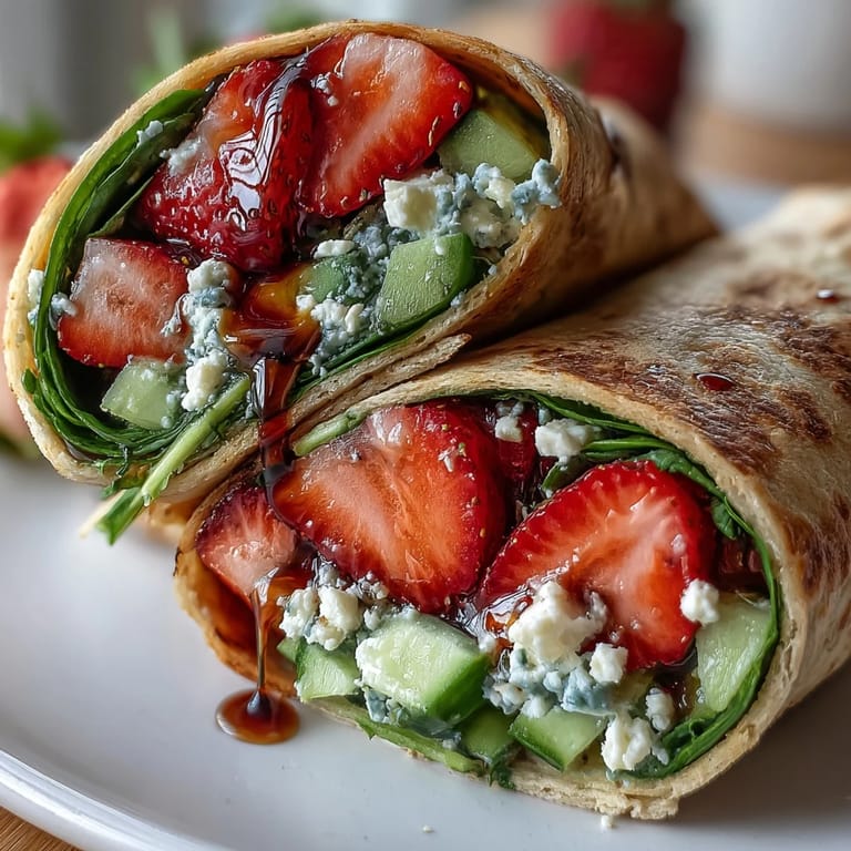 Save Pin My coworker Sarah showed up to our office potluck with these wraps last summer, and I watched people abandon their heavy casseroles to crowd around her cooler. The vibrant pink strawberries peeking through the tortilla, the way the goat cheese crumbles caught the light—it was almost too pretty to eat. When I finally bit into mine, the tartness of the balsamic mingled with sweet berries and that creamy cheese, and I immediately asked for the recipe. She laughed and admitted she'd thrown it together that morning because her farmer's market haul was too beautiful to waste.