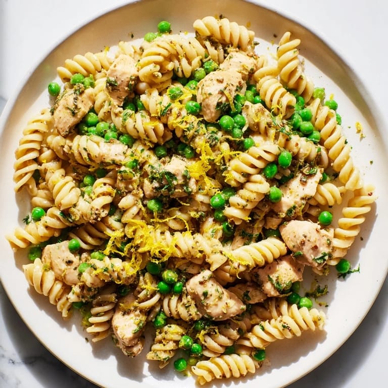 I first made this on a Tuesday evening when I'd completely forgotten to plan dinner. The chicken was already thawed, there was a bag of peas in the freezer, and half a box of pasta in the pantry. Twenty minutes later, we were sitting down to something that tasted way more thoughtful than my last-minute scramble actually was.
