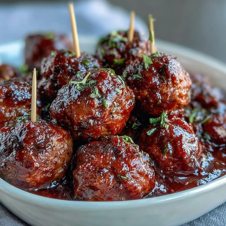 Save Pin My neighbor brought these to a block party in a little slow cooker with cartoon toothpicks stuck in every glossy meatball. I thought she was joking when she said the sauce was just two ingredients plus a few shakes of this and that. One bite and I was fishing for the recipe before I even finished chewing. The sweetness hits first, then the tang sneaks up, and somehow it all makes perfect sense together.
