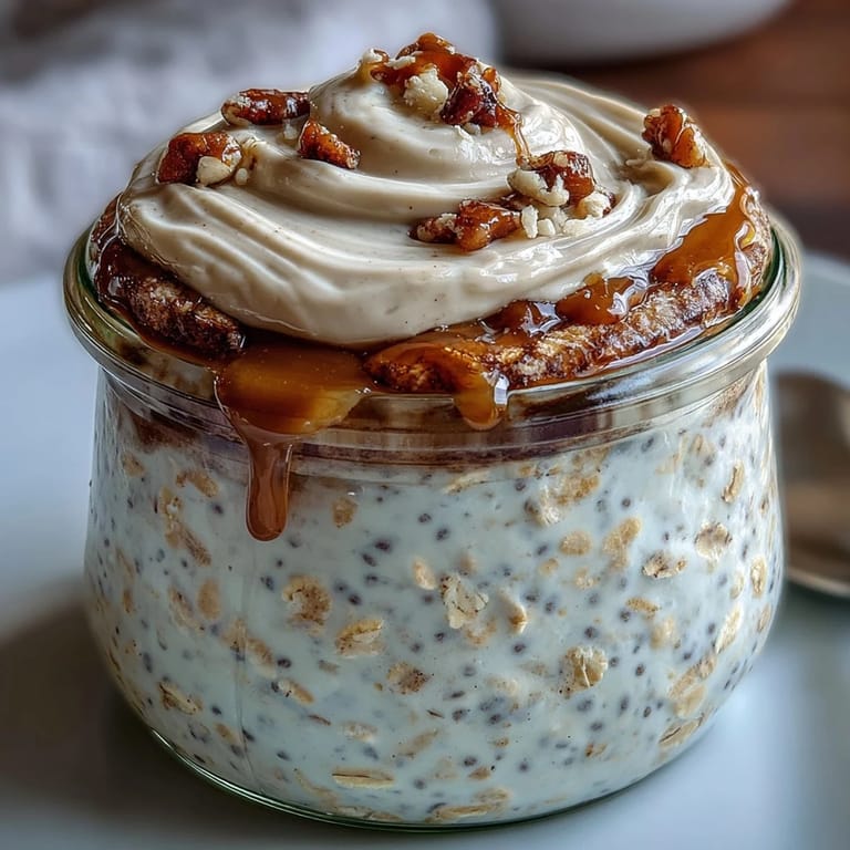 Save Pin Indulge in these High-Protein Cinnamon Roll Overnight Oats for a balanced, flavorful breakfast that makes your morning routine effortless and delicious.