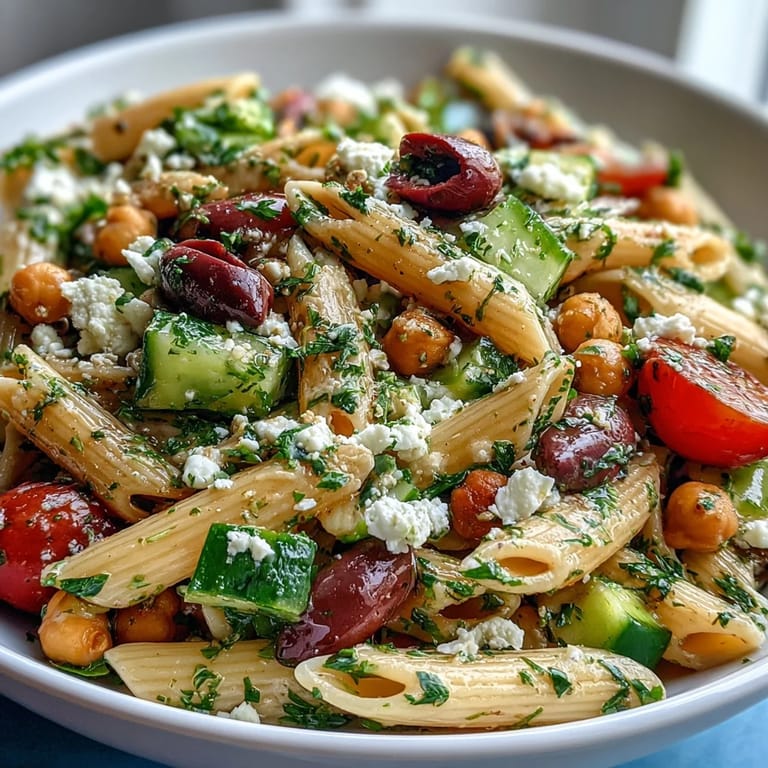 Save Pin Last summer, I was tasked with bringing something to a beach gathering, and I stood in my kitchen wondering what wouldn't wilt in the heat or turn soggy by the time we arrived. That's when this Mediterranean chickpea pasta salad came together almost by accident, pulling ingredients from my pantry and fridge with the confidence of someone who had nothing to lose. The moment I tasted it chilled, with that bright lemon hitting the briny olives and creamy feta, I knew I'd stumbled onto something that would become a regular in my rotation. It's the kind of dish that tastes even better the next day, which is rare and wonderful.