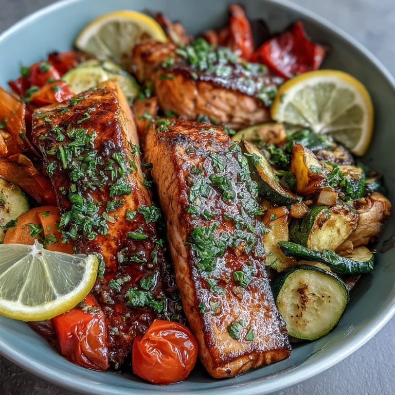 Save Pin There's something about roasting salmon and vegetables together that transforms a weeknight obligation into something you're actually excited to make. It became the dish I'd volunteer to bring to potlucks because it looks like you tried harder than you actually did, and it stays delicious whether it's served warm or room temperature.
