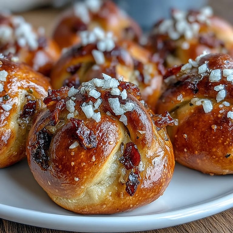 Save Pin There's something almost magical about the moment when caramelized onions meet tangy sourdough—it happened to me on a quiet Tuesday afternoon when I was experimenting with leftover starter and had a pile of onions sitting on my counter. The smell of them slowly turning golden filled my kitchen, and I thought, why not fold them into something unexpected? That first batch of pretzel bites emerged from the oven with this deep brown crust and the most incredible savory aroma, and suddenly I understood why people get obsessed with making their own bread.