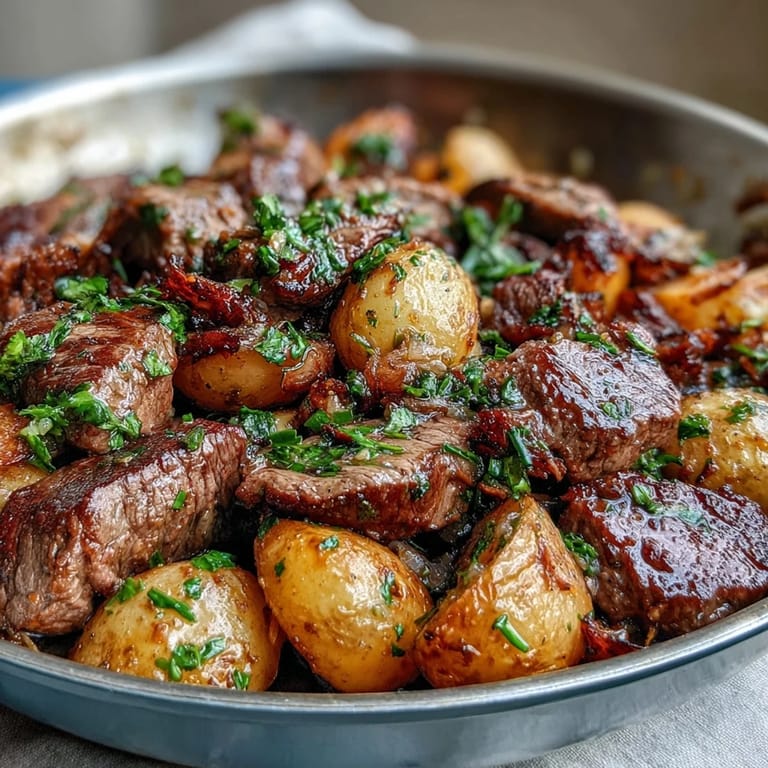 Save Pin Tender steak bites and crispy potatoes tossed in a rich garlic butter sauce bring classic pot roast flavors to your kitchen in a fraction of the time. This Garlic Butter Steak & Potato Skillet is reimagined for a quick, mouthwatering meal that feels like a weekend feast but is simple enough for any weeknight dinner.