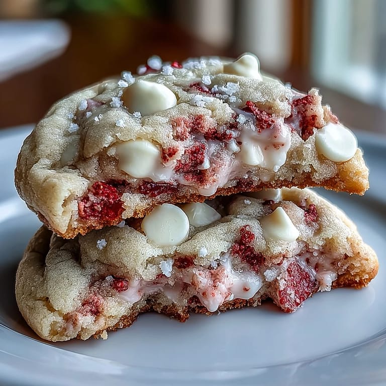 The secret to these cookies' charm lies in the freeze-dried strawberries. Unlike fresh or frozen berries, freeze-dried strawberries crush easily into a powder and small pieces that distribute their intense, concentrated flavor throughout the dough without adding excess moisture. Combined with optional strawberry extract for an extra punch of fruitiness, these cookies taste like a strawberry dream wrapped in a soft, golden cookie. The white chocolate chips melt slightly during baking, creating pockets of creamy sweetness that complement the tartness of the strawberry perfectly.