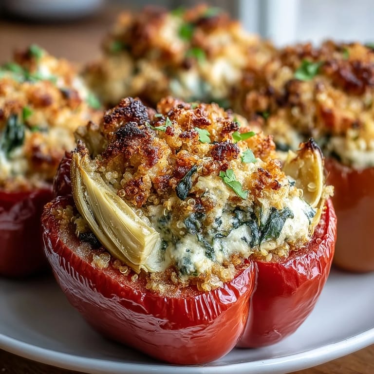 Save Pin There's something about watching a bell pepper transform from hollow shell to a vessel overflowing with creamy, savory goodness that never gets old. My first attempt at these stuffed peppers was born from pure desperation on a Tuesday night when I had half a container of spinach wilting in the fridge and absolutely nothing appealing to make for dinner. The cashew cream changed everything—suddenly I wasn't just eating roasted vegetables, I was eating something rich and deeply satisfying that made me forget I wasn't eating cheese. These days, I make them for weeknight dinners and for impressing people who still think vegan cooking means lettuce and suffering.